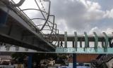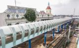 Suasana proyek pembangunan jembatan layang penghubung (Skybridge) antara Stasiun Bogor dan Stasiun Paledang di Kota Bogor, Jawa Barat, Kamis (30/11/2023). Balai Teknik Perkeretaapian (BTP) Bandung membangun jembatan layang penghubung sepanjang 200 meter dengan anggaran sebesar Rp 88 miliar dan ditargetkan selesai pada akhir 2023. (FOTO : Republika/Putra M. Akbar)