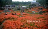Hamparan Bunga Amarilis yang bermekaran di Gunungkidul, Yogyakarta, Kamis (30/11/2023). Setiap memasuki awal musim penghujan kebun Bunga Amarilis milik Sukadi menjadi salah satu tujuan wisata sejak 2015. Pengunjung dengan membayar retribusi masuk Rp 10 ribu bisa melihat dan berswafoto di hamparan Bunga Amarilis. Lama mekarnya bunga sekitar dua Minggu dan waktunya biasanya sekitar akhir November hingga awal Desember. Menurut pemilik, Sukadi saat ini di kebunnya memiliki dua juta umbi Bunga Amarilis dengan jumlah tangkai sekitar 4 juta tangkai bunga. (FOTO : Republika/Wihdan Hidayat)