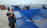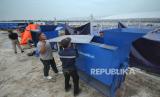 Petugas memasang mesin gibrik saat proses pembangunan Tempat Pengolahan Sampah Terpadu (TPST) Gedebage, di Rancanumpang, Kecamatan Gedebage, Kota Bandung, Jumat (1/12/2023). TPST ini mampu mengurangi volume sampah yang dibuang ke tempat pembuangan akhir (TPA) hingga 60 ton per hari. Sampah yang dibuang disini akan menggunakan metode maggotisasi. Sedangkan untuk sampah anorganik akan digunakan menjadi bahan bakar alternatif (Refuse Derived Fuel/RDF). Pembangunan TPST Gedebage targetnya pada 4 Desember 2023 sudah operasional. (FOTO : Edi Yusuf/Republika)