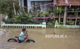 Seorang anak menggunakan sepeda melintasi genangan air saat banjir di Kampung Bojongasih, Dayeuhkolot, Kabupaten Bandung, Jawa Barat, Jumat (1/12/2023). Banjir akibat intensitas curah hujan yang tinggi dan meluapnya sungai Citarum tersebut menyebabkan ratusan rumah di Kampung Bojongasih, Kabupaten Bandung terendam banjir setinggi 10 hingga 60 sentimeter. (FOTO : REPUBLIKA/ABDAN SYAKURA)