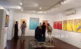 REPUBLIKA.CO.ID, DEPOK. -- Pengunjung melihat karya seni di Msalmam Gallery, Cinere, Depok, Jumat (1/12/2023).