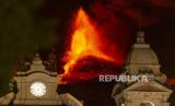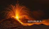 REPUBLIKA.CO.ID, CATANIA. -- Lava meletus dari kawah Tenggara di Gunung Etna, di belakang gereja Santa Maria della Guardia di Belpasso, dekat Catania, Italia, Jumat (1/12/ 2023).