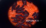 Wujud telur nyamuk Aedes aegypti ber-wolbachia terlihat dari mikroskop di Insektarium Universitas Gajah Mada (UGM), Yogyakarta, Sabtu (2/12/2023). Sejak 2011 Insektarium UGM mengembangbiakkan atau berternak nyamuk Aedes aegypti ber-wolbachia. Tujuan nyamuk Aedes aegypti ber-wolbachia dikembangbiakkan untuk menekan penularan virus demam berdarah di masyarakat. Mulai 2015 pelepasan telur Aedes aegypti mulai dilakukan di lingkungan masyarakat. Saat ini, Insektarium UGM bisa memanen telur nyamuk Aedes aegypti sebanyak 550.000 telur dalam atau periode atau sekitar tiga minggu. (FOTO : Republika/Wihdan Hidayat)