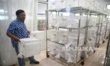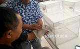 REPUBLIKA.CO.ID, YOGYAKARTA. -- Petugas memeriksa proses penetasan larva nyamuk Aedes aegypti ber-wolbachia di Insektarium Universitas Gajah Mada (UGM), Yogyakarta, Sabtu (2/12/2023).