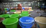Ratusan ember untuk menetaskan nyamuk Aedes aegypti ber-wolbachia di Insektarium Universitas Gajah Mada (UGM), Yogyakarta, Sabtu (2/12/2023). Sejak 2011 Insektarium UGM mengembangbiakkan atau berternak nyamuk Aedes aegypti ber-wolbachia. Tujuan nyamuk Aedes aegypti ber-wolbachia dikembangbiakkan untuk menekan penularan virus demam berdarah di masyarakat. Mulai 2015 pelepasan telur Aedes aegypti mulai dilakukan di lingkungan masyarakat. Saat ini, Insektarium UGM bisa memanen telur nyamuk Aedes aegypti sebanyak 550.000 telur dalam atau periode atau sekitar tiga minggu. (FOTO : Republika/Wihdan Hidayat)