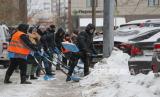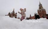 Warga Moskow juga turut bersama-sama membersihkan tumpukkan salju yang menghambat lalu lintas jalan.