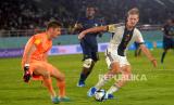 Peyerang Timnas U17 Jerman, Moerstedt mencoba mengecoh kiper Timnas U17 Perancis Paul Argney saat pertandingan Final Piala Dunia U17 2023 di Stadion Manahan, Surakarta, Jawa Tengah, Sabtu (2/12/2023). Jerman berhasil memenangkan Piala Dunia U17 untuk pertama kalinya usai mengalahkan Perancis melalui adu pinalti 4-3 (2-2). Jerman pada babak kedua bermain dengan 10 pemain usai Osawe mendapat kartu merah pada menit ke 69. (FOTO : Republika/Wihdan Hidayat)