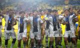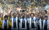 Selebrasi pemain Timnas U17 Jerman saat penyerahan Thropy Piala Dunia U17 2023 di Stadion Manahan, Surakarta, Jawa Tengah, Sabtu (2/12/2023). Jerman berhasil memenangkan Piala Dunia U17 untuk pertama kalinya usai mengalahkan Perancis melalui adu pinalti 4-3 (2-2). Jerman pada babak kedua bermain dengan 10 pemain usai Osawe mendapat kartu merah pada menit ke 69. (FOTO : Republika/Wihdan Hidayat)