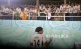 Suporter santri mengulurkan tangan ke pemain Timnas U17 Jerman usai penyerahan Thropy Piala Dunia U17 2023 di Stadion Manahan, Surakarta, Jawa Tengah, Sabtu (2/12/2023). Jerman berhasil memenangkan Piala Dunia U17 untuk pertama kalinya usai mengalahkan Perancis melalui adu pinalti 4-3 (2-2). Jerman pada babak kedua bermain dengan 10 pemain usai Osawe mendapat kartu merah pada menit ke 69. (FOTO : Republika/Wihdan Hidayat)