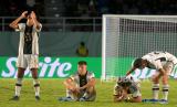 Kekecewaan pemain Timnas U17 Perancis usai kalah adu pinalti melawan Timnas U17 Jerman saat pertandingan Final Piala Dunia U17 2023 di Stadion Manahan, Surakarta, Jawa Tengah, Sabtu (2/12/2023). Jerman berhasil memenangkan Piala Dunia U17 untuk pertama kalinya usai mengalahkan Perancis melalui adu pinalti 4-3 (2-2). Jerman pada babak kedua bermain dengan 10 pemain usai Osawe mendapat kartu merah pada menit ke 69. (FOTO : Republika/Wihdan Hidayat)