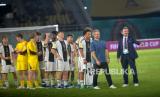 Pelatih Timnas U17 Jerman, Christian Wueck dan pemain bersiap menuju tempat pengalungan medali emas saat penyerahan Thropy Piala Dunia U17 2023 di Stadion Manahan, Surakarta, Jawa Tengah, Sabtu (2/12/2023). Jerman berhasil memenangkan Piala Dunia U17 untuk pertama kalinya usai mengalahkan Perancis melalui adu pinalti 4-3 (2-2). Jerman pada babak kedua bermain dengan 10 pemain usai Osawe mendapat kartu merah pada menit ke 69. (FOTO : Republika/Wihdan Hidayat)