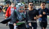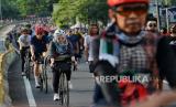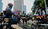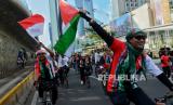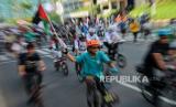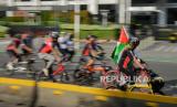 REPUBLIKA.CO.ID,JAKARTA -- Komunitas sepeda bersama warga mengikuti kegiatan Gowes For Palestine di jalur Hari Bebas Kendaraan Bermotor (HBKB), Jalan Sudirman-Thamrin, Jakarta, Ahad (3/12/2023).