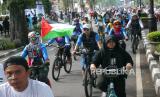 Ribuan pesepeda melakukan aksi Ride for Palestine #2, di Car Free Day (CFD), Jalan Ir H Djuanda, Kota Bandung, Jawa Barat, Ahad (3/12/2023). Kegiatan yang bertajuk Pesepeda Bandung Raya Peduli Palestina ini diikuti oleh berbagai komonitas sepeda di Bandung Raya, untuk menyuarakan perdamaian dan dukungan bagi Palestina. (FOTO : Edi Yusuf/Republika)