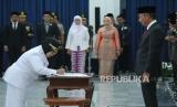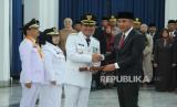 Pelantikan Bupati Karawang, Penjabat Bupati Kuningan, dan Penjabat Wali Kota Banjar oleh Penjabat Gubernur Jawa Barat (Jabar) Bey Machmudin di Aula Barat Gedung Sate, Kota Bandung, Senin (4/12/2023). (FOTO : Edi Yusuf/Republika)