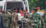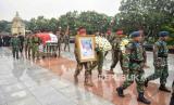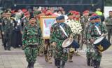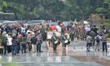 Jenazah dibawa menuju tempat pemakaman dengan prosesi upacara militer.