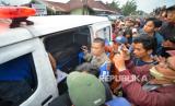 REPUBLIKA.CO.ID, SUMBAR -- Petugas menenangkan keluarga korban erupsi Gunung Marapi yang histeris menunggu kabar anggota keluarganya di posko bencana Nagari Batu Palano, Agam, Sumatera Barat, Senin (4/12/2023). Basarnas merilis sebanyak 11 orang pendaki meninggal dunia akibat erupsi Gunung Marapi pada Ahad (3/12/2023), keluarga diminta langsung menunggu di RSUD Dr Achmad Mochtar Bukittinggi untuk mengidentifikasi korban.