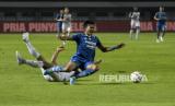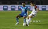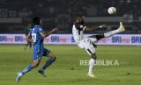 Gelandang Persib Bandung Stefano Beltrame (kanan) berusaha menendang bola dalam pertandingan lanjutan BRI Liga 1 2023-2024 di Stadion Gelora Bandung Lautan Api (GBLA), Gedebage, Bandung, Jawa Barat, Senin (4/12/2023). Dalam pertandingan tersebut Persib Bandung ditahan imbang oleh PSM Makassar dengan skor akhir 0-0. (FOTO : REPUBLIKA/ABDAN SYAKURA)