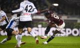 Duvan Zapata pemain Torino mencetak gol pada laga sepak bola Serie A melawan Atalanta di Stadion Olimpico Grande Torino, Turin, Italia,  Selasa (5/12/2023)dini hari WIB. (FOTO : Fabio Ferrari/LaPresse via AP)