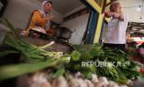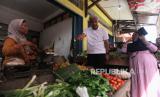 Calon Presiden nomor urut tiga Ganjar Pranowo berbincang dengan pedagang sayur saat melakukan kampanye di Pasar Baru Klandasan Ilir, Balikpapan, Kalimantan Timur, Selasa (5/12/2023). Pada kampanye tersebut Ganjar Pranowo berdialog dengan pedagang terkait harga komoditas pangan seperti cabai dan tempe. (FOTO : Republika/Putra M. Akbar)