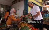 Calon Presiden nomor urut tiga Ganjar Pranowo membeli cabai saat melakukan kampanye di Pasar Baru Klandasan Ilir, Balikpapan, Kalimantan Timur, Selasa (5/12/2023). Pada kampanye tersebut Ganjar Pranowo berdialog dengan pedagang terkait harga komoditas pangan seperti cabai dan tempe. (FOTO : Republika/Putra M. Akbar)