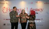 Kepala Literasi dan Inklusi Keuangan Syariah OJK Mohammad Ismail Riyadi, Presiden Direktur Prudential Indonesia Michellina Laksmi Triwardhany, dan Badan Pengurus Harian Pengurus Pusat MES Dr. Hj. Siti Marifah (dari kiri), berbincang disela kegiatan Workshop Literasi Keuangan bagi Perempuan bertema Merdeka Finansial Bukan Sekedar Impian di Jakarta, Selasa (5/12/2023). Prudential bersama MES mengadakan kegiatan edukasi Literasi Keuangan bagi Perempuan (Financial Literacy for Women) di Indonesia sebagai bagian dari program Community Investment Prudential. (FOTO : Dok Republika)