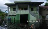 Suasana kawasan permukiman yang terendam banjir di Desa Parit Baru, Kecamatan Sungai Raya, Kabupaten Kubu Raya, Kalimantan Barat, Selasa (5/12/2023). Banjir setinggi 20 cm hingga 50 cm menggenangi sejumlah permukiman penduduk di tiga desa di Kabupaten Kubu Raya yaitu Parit Baru, Teluk Kapuas dan Arang Limbung akibat tingginya curah hujan dalam beberapa hari terakhir di daerah setempat. (FOTO : Antara/Jessica Wuysang)