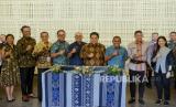 Menteri Koordinator Bidang Kemaritiman dan Investasi (Menko Marves) Ad Interim Erick Thohir (keempat kanan) President Director Indonesia Tourism Development Corporation (ITDC) Ari Respati (tengah) Menteri Pariwisata dan Ekonomi Kreatif Sandiaga Uno (kedua kanan), Wakil Menteri Agama Saiful Rahmat Daisuki (ketiga kiri), dan Wakil Menteri Pariwisata dan Ekonomi Kreatif, Angela Tanoesoedibjo (kanan) berfoto bersama usai peresmian Golo Mori Convention Center (GMCC) di Golo Mori, Kabupaten Manggarai Barat, NTT, Rabu (6/12/2023). PT Pengembangan Pariwisata Indonesia (Persero) atau Indonesia Tourism Development Corporation (ITDC) meresmikan Golo Mori Convention Center (GMCC) yang dapat digunakan untuk kegiatan Meeting, Incentives, Conventions and Exhibitions (MICE) berstandar internasional. Lokasi GMCC tersebut berhadapan dengan Pulau Rinca yang termasuk kedalam Taman Nasional Komodo yang merupakan situs warisan dunia UNESCO. kawasan MICE Golo Mori ini akan dikembangkan menjadi kawasan pariwisata berkelanjutan yang terintegrasi dengan dilengkapi fasilitas hotel dan resort berbintang, pusat penelitian dan wisata edukasi komodo, wisata petualangan (adventure tourism) pelabuhan wisata dan penyeberangan serta fasilitas penunjang wisata lainnya. (FOTO : Republika/Thoudy Badai)