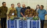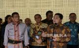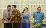 REPUBLIKA.CO.ID, MANGARAI BARAT -- Menteri Koordinator Bidang Kemaritiman dan Investasi (Menko Marves) Ad Interim Erick Thohir menandatangani prasasti disaksikan President Director Indonesia Tourism Development Corporation (ITDC) Ari Respati, Wakil Menteri Agama Saiful Rahmat Daisuki (kedua kiri,) dan Wakil Menteri Pariwisata dan Ekonomi Kreatif, Angela Tanoesoedibjo saat peresmian Golo Mori Convention Center (GMCC) di Golo Mori, Kabupaten Manggarai Barat, NTT, Rabu (6/12/2023).