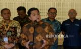 Menteri Koordinator Bidang Kemaritiman dan Investasi (Menko Marves) Ad Interim Erick Thohir (tengah) President Director Indonesia Tourism Development Corporation (ITDC) Ari Respati (kanan) dan Wakil Menteri Agama Saiful Rahmat Daisuki (kiri) memberikan keterangan usai peresmian Golo Mori Convention Center (GMCC) di Golo Mori, Kabupaten Manggarai Barat, NTT, Rabu (6/12/2023). PT Pengembangan Pariwisata Indonesia (Persero) atau Indonesia Tourism Development Corporation (ITDC) meresmikan Golo Mori Convention Center (GMCC) yang dapat digunakan untuk kegiatan Meeting, Incentives, Conventions and Exhibitions (MICE) berstandar internasional. Lokasi GMCC tersebut berhadapan dengan Pulau Rinca yang termasuk kedalam Taman Nasional Komodo yang merupakan situs warisan dunia UNESCO. kawasan MICE Golo Mori ini akan dikembangkan menjadi kawasan pariwisata berkelanjutan yang terintegrasi dengan dilengkapi fasilitas hotel dan resort berbintang, pusat penelitian dan wisata edukasi komodo, wisata petualangan (adventure tourism) pelabuhan wisata dan penyeberangan serta fasilitas penunjang wisata lainnya. (FOTO : Republika/Thoudy Badai)