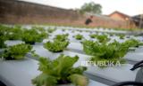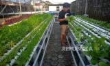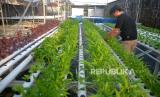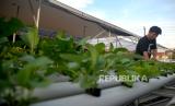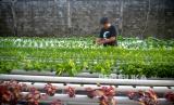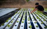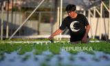 REPUBLIKA.CO.ID, YOGYAKARTA -- Petani milenial, Edwin (36) memeriksa kondisi tanaman sayur hidroponik di Gubuk Hydro, Sleman, Yogyakarta, Rabu (6/12/2023).