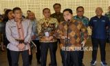 Menteri Koordinator Bidang Kemaritiman dan Investasi (Menko Marves) Ad Interim Erick Thohir (tengah), President Director Indonesia Tourism Development Corporation (ITDC) Ari Respati (kanan), Menteri Pariwisata dan Ekonomi Kreatif Sandiaga Uno (kiri) dan Wakil Menteri Agama Saiful Rahmat Daisuki (kedua kiri) memberikan keterangan usai peresmian Golo Mori Convention Center (GMCC) di Golo Mori, Kabupaten Manggarai Barat, NTT, Rabu (6/12/2023). PT Pengembangan Pariwisata Indonesia (Persero) atau Indonesia Tourism Development Corporation (ITDC) meresmikan Golo Mori Convention Center (GMCC) yang dapat digunakan untuk kegiatan Meeting, Incentives, Conventions and Exhibitions (MICE) berstandar internasional. Lokasi GMCC tersebut berhadapan dengan Pulau Rinca yang termasuk kedalam Taman Nasional Komodo yang merupakan situs warisan dunia UNESCO. kawasan MICE Golo Mori ini akan dikembangkan menjadi kawasan pariwisata berkelanjutan yang terintegrasi dengan dilengkapi fasilitas hotel dan resort berbintang, pusat penelitian dan wisata edukasi komodo, wisata petualangan (adventure tourism) pelabuhan wisata dan penyeberangan serta fasilitas penunjang wisata lainnya. (FOTO : Republika/Thoudy Badai)