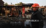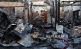 REPUBLIKA.CO.ID, SURABAYA -- Petugas Dinas Pemadam Kebakaran dan Penyelamatan (DPKP) Kota Surabaya melakukan pembasahan pada sejumlah toko yang terbakar di Jalan Patmosusastro, Surabaya, Jawa Timur, Kamis (7/12/2023). Sebanyak 18 kendaraan pemadam kebakaran DPKP Kota Surabaya dikerahkan untuk memadamkan kebakaran enam bangunan yang digunakan sebagai tempat usaha pembuatan abon serta penjualan barang-barang antik.