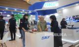 Pengunjung sedang menghadiri pameran Manufacturing Indonesia 2023, di JIExpo Kemayoran, Jakarta, Kamis (7/12/2023). Di pameran peralatan pengolahan internasional terbesar di Asia ini, SKF menampilkan jajaran solusi berbasis Intelligent and Clean untuk mendukung para pelaku industri di Indonesia meningkatkan produktivitas dan daya saing. SKF mengikutsertakan engineer perempuan dalam industri pengolahan sebagai figur inspiratif. (FOTO : Republika/Tahta Aidilla)