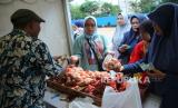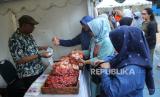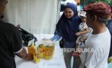 Warga berbelanja di salah satu stan saat kegiatan pasar murah di Jalan Elang, Kota Bandung, Jawa Barat, Jumat (8/12/2023). Pemerintah Kota Bandung menggelar pasar murah di 30 kecamatan, dengan menjual berbagai kebutuhan pokok di bawah harga pasar. Kegiatan ini merupakan upaya mengendalikan harga barang kebutuhan pokok, dan pengendalian inflasi menjelang akhir tahun. (FOTO : Edi Yusuf/Republika)
