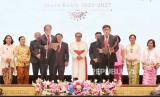 Ketua Yayasan Atma Jaya Linus M. Setiadi (kiri) dan Rektor Unika Atma Jaya Periode 2023 - 2027 Yuda Turana saat Prosesi Pelantikan dan Janji Rektor di Kampus Unika Atma Jaya Semanggi, Jakarta, Jumat (8/12/2023). Panitia seleksi Yayasan Atma Jaya, melalui proses panjang sejak Februari hingga Juni 2023, akhirnya telah menetapkan Prof. Yuda Turana sebagai Rektor Unika Atma Jaya yang baru, periode 2023 – 2027, menggantikan Agustinus Prasetyantoko. Yayasan Atma Jaya memberikan amanah khusus untuk meningkatkan keunggulan daya saing kampus ke jenjang lebih tinggi lagi, di level regional. (FOTO : Dok Republika)