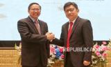 REPUBLIKA.CO.ID, JAKARTA -- Rektor Unika Atma Jaya Periode 2019 - 2023 Agustinus Prasetyantoko, Rektor Unika Atma Jaya Periode 2023 - 2027 Yuda Turana (kanan) berjabat tangan usai pelantikan Pelantikan dan Janji Rektor di Kampus Unika Atma Jaya Semanggi, Jakarta, Jumat (8/12/2023).