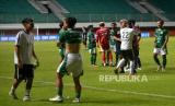 Ramah tamah pemain usai pertandingan antara PSS Sleman dengan RANS Nusantara usai pertandingan pekan ke-22 BRI Liga 1 di Stadion Maguwoharjo, Sleman, Yogyakarta, Jumat (8/12/2023). Tuan rumah PSS Sleman berhasil memetik poin penuh usai menang tipis 1-0 atas RANS Nusantara berkat gol dari tendangan bebas gelandang Jonathan Bustos. Pertandingan pekan ke-22 merupakan yang terakhir di Stadion Maguwoharjo, karena akan segera direnovasi hingga delapan bulan mendatang. (FOTO : Republika/Wihdan Hidayat)