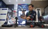 Pekerja memperlihatkan cara pengunaan alat bor mengunakan batere saat gelaran Manufacturing Expo 2023, di Jakarta, Kamis (7/12/2023). Perdana, Divisi Power Tools dari Bosch berpartisipasi dalam pameran ini dengan membawa deretan produk unggulan Bosch Power Tools, seperti Impact Wrench GDS 18V-400 dan Angle Screwdriver Exact Ion, yang dukung pekerjaan para pelaku industri manufaktur, terutama untuk pengencangan baut atau mur yang membutuhkan kunci momen atau kunci torsi. (FOTO : Republika/Tahta Aidilla)