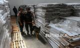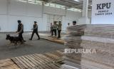 Satgas Operasi Mantap Brata Lancang Kuning (Satgas OMB LK) Sterilisasi 2023-2024 Pemilu Damai 2024 melibatkan satwa K9 saat melaksanakan sterilisasi di area gudang logistik KPU Pekanbaru di Pekanbaru, Riau, Jumat (8/12/2023). Kegiatan sterilisasi itu dilakukan guna menciptakan kondisi aman dan damai menuju Pemilu 2024. (FOTO : Antara/Rony Muharrman)