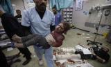 Warga Palestina yang terluka akibat pemboman Israel di Jalur Gaza tiba di sebuah rumah sakit di Khan Younis pada Jumat (8/12/2023). (FOTO : AP Photo/Mohammed Dahman)