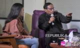 Calon Wakil Presiden nomor urut 3 Mahfud MD menjadi pembicara pada Ngobrol Santai Bersama Generasi Milenial di Bandung Interactive Hub, Bandung, Jawa Barat, Sabtu (9/12/2023). Dalam kegiatan yang bertepatan dengan peringatan Hari Antikorupsi Sedunia 2023 tersebut Mahfud MD menyampaikan pentingnya peranan generasi milenial untuk mengawasi kekuasaan, mencegah dan memberantas korupsi. (FOTO : REPUBLIKA/ABDAN SYAKURA)