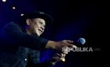 REPUBLIKA.CO.ID,GIANYAR -- Vokalis kelompok musik Padi Reborn Fadly menghibur penggemarnya saat tampil dalam Festival Satu Dasawarsa Kutus-Kutus di Gianyar, Bali, Sabtu (9/12/2023).