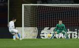 Valery Fernandez dari Girona (kiri) mencetak gol ketiga timnya melewati kiper Barcelona Inaki Pena dalam pertandingan sepak bola La Liga Spanyol antara Barcelona dan Girona di stadion Olimpic Lluis Companys di Barcelona, ??Spanyol, Senin (11/12/2023) dini hari WIB. (FOTO : AP/Joan Monfort)
