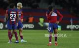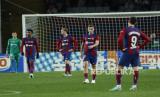 Reaksi para pemain tim Barcelona usai pertandingan sepak bola La Liga Spanyol antara Barcelona dan Girona di stadion Olimpic Lluis Companys di Barcelona, ??Spanyol, Senin (11/12/2023) dini hari WIB. (FOTO : AP/Joan Monfort)