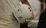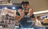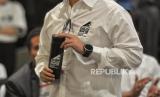 Capres no urut 3 Ganjar Pranowo memakai merchandise pada acara grand launching official merchandise Ganjar-Mahfud di FX Senayan, Jakarta, Senin (11/12/2023). Official Merchandise Ganjar-Mahfud ini bertujuan untuk memfasilitasi masyarakat yang ngefans terhadap Ganjar-Mahfud sekaligus salah satu upaya TPN Ganjar-Mahfud untuk menggalang dana kampanye secara adil, jujur dan terbuka. (FOTO : Republika/Prayogi)