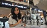 Karyawan menanta merchandise Ganjar-Mahfud yang baru diluncurkan di FX Senayan, Jakarta, Senin (11/12/2023). Official Merchandise Ganjar-Mahfud ini bertujuan untuk memfasilitasi masyarakat yang ngefans terhadap Ganjar-Mahfud sekaligus salah satu upaya TPN Ganjar-Mahfud untuk menggalang dana kampanye secara adil, jujur dan terbuka. (FOTO : Republika/Prayogi)