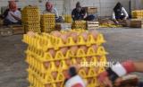 Pekerja memilah telur ayam di Kampung Ayam Petelur, Desa Muktisari, Kecamatan Cipaku, Kabupaten Ciamis, Jawa Barat, Senin (11/12/2023). Koperasi Produsen Peternak Ayam Petelur Ciamis (P2APC) memproduksi sebanyak 25 ton telur ayam per hari dalam memenuhi kebutuhan pasar di wilayah Priangan Timur dan Bandung, dengan omset yang didapat mencapai Rp500 juta per hari. (FOTO : Antara/Adeng Bustomi)