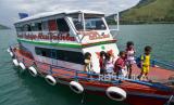 Sejumlah anak meninggalkan kapal usaimengikuti kegiatan belajar di atas kapal belajar Alusi Tao Toba di Dermaga Desa Simangulampe, Humbang Hasundutan, Sumatera Utara, Senin (11/12/2023). Kapal belajar yang digunakan sejak tahun 2015 itu memiliki koleksi buku sebanyak 1.000 buku, berkeliling ke tujuh kabupaten di seputaran Danau Toba guna mencerdaskan anak dan menjaga minat baca sejak usia dini.   (FOTO : Antara/FransiscoCarollio)