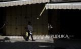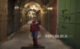 Seorang wanita berjalan melewati deretan etalase toko yang ditutup untuk pemogokan umum yang menyerukan gencatan senjata di Gaza, di Kota Tua Yerusalem, Palestina, Senin (11/12/2023). (FOTO : AP/Maya Alleruzzo)