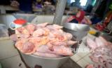 Pedagang menimbang daging ayam potong di Pasar Prawirotaman, Yogyakarta, Selasa (12/12/2023). Jelang Nataru 2024 kebutuhan bahan pokok di beberapa pasar tradisional mulai mengalami penaikan. Menurut pedagang naiknya harga bahan pokok bervariasi. Harga cabai rawit masih mahal di harga Rp 90 ribu per kilogram, beras kualitas bagus Rp 15 ribu perkilogram, minyak goreng curah Rp 12 ribu per liter, Naiknya komoditas sayuran dan hasil pertanian imbas dari banyaknya gagal panen karena El Nino pada akhir tahun ini. (FOTO : Republika/Wihdan Hidayat)